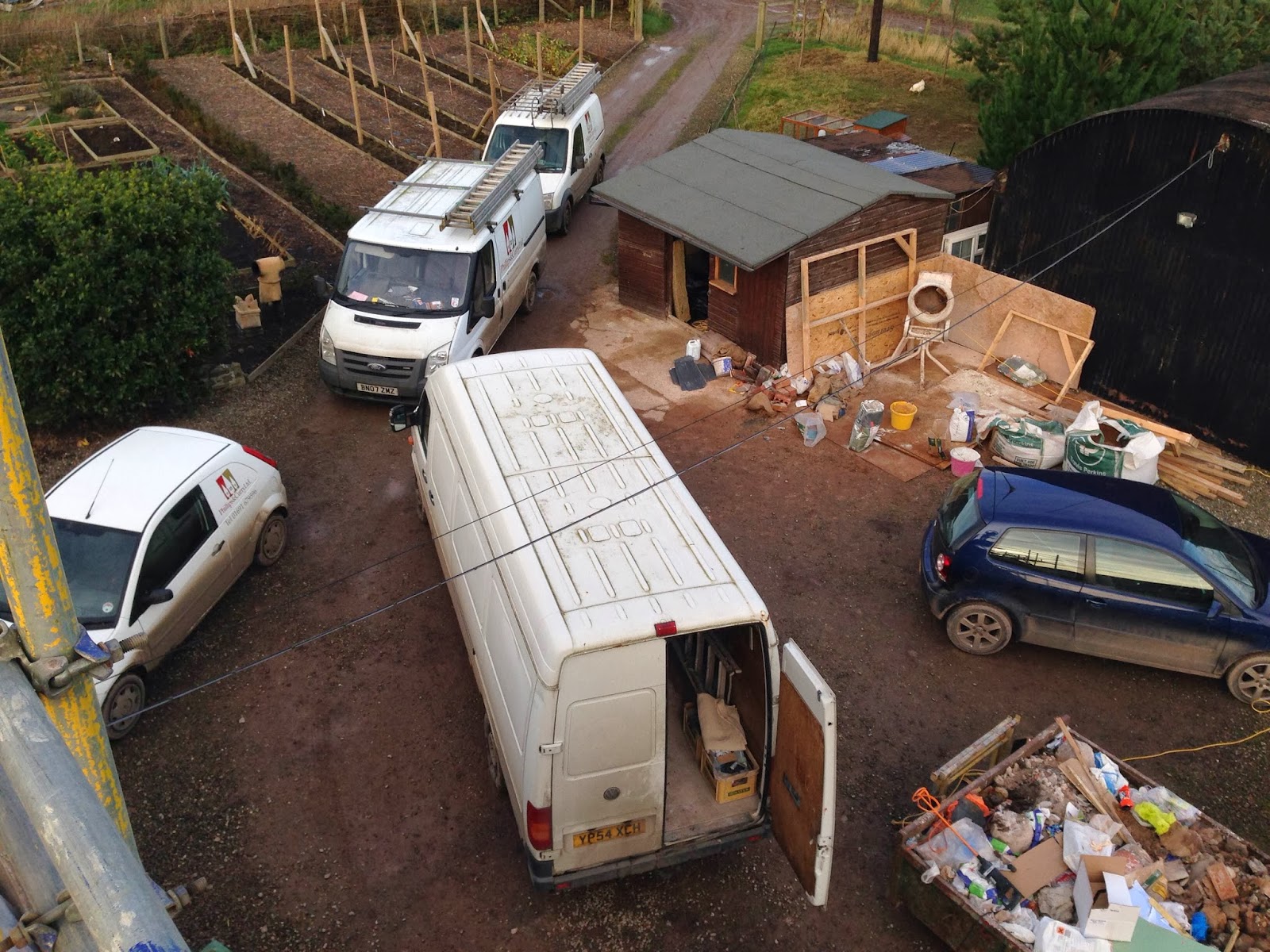 So, the scaffold not only gave us a better view of the chimney stacks, it also provides a great vantage point for a unique view of the garden and surrounding Shropshire countryside - a reminder of why we are liucky to live in such a beautiful spot.