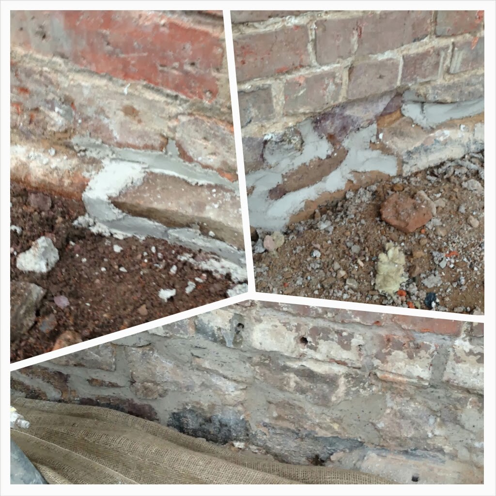 Other work started this week was the preparation of window and door reveals ahead of the plasterer who will be with us again in a few weeks. We also saw some clearing up inside the house where lime grout had leaked through the west wall (in significant amounts) into the living areas and cellar.